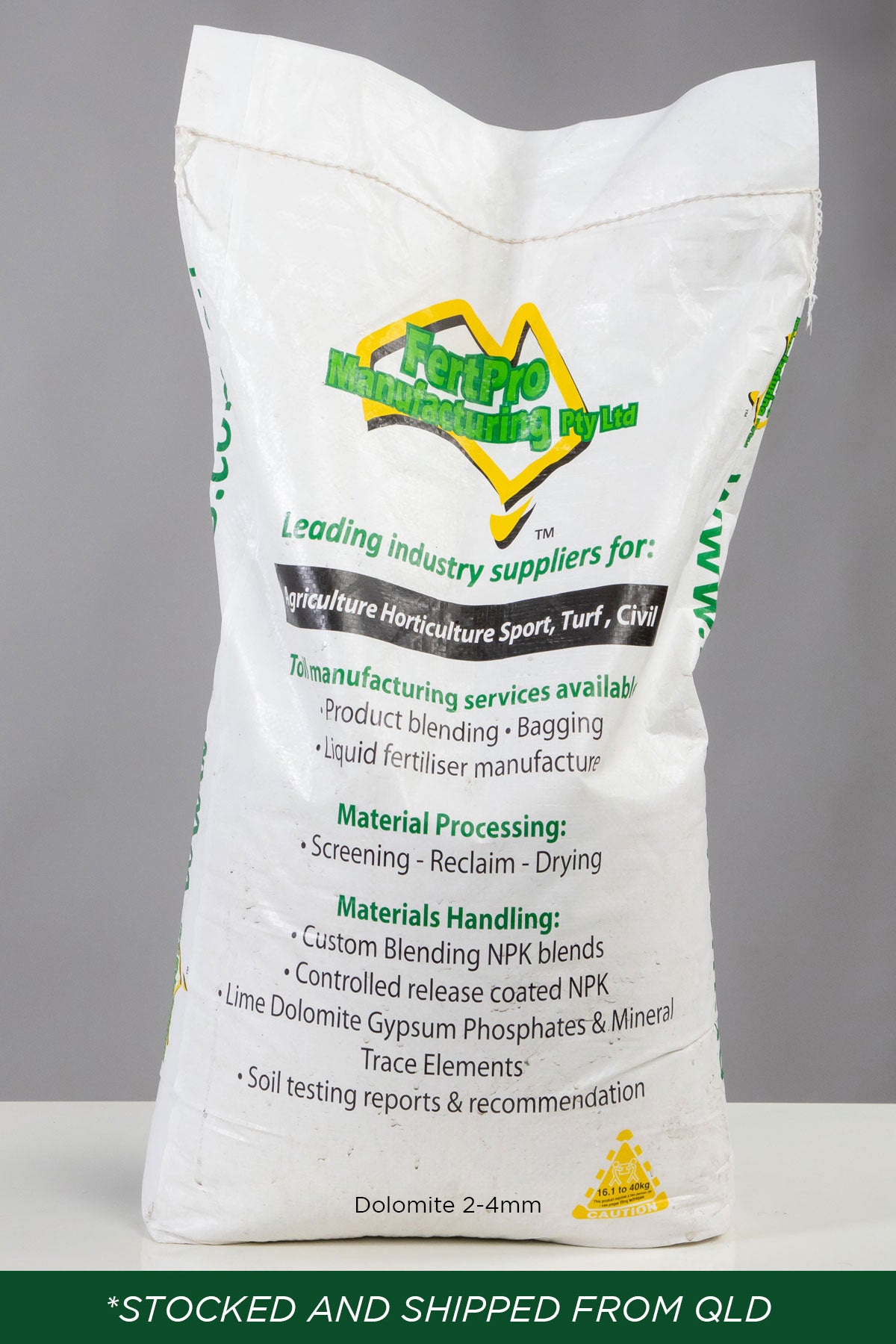 Dolomite Course Grade is best applied by a fertiliser spreader to ensure even application. This product is safe for use around children and domestic cats and dogs.